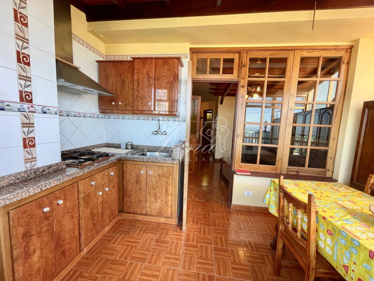 Por último, en la tercera planta hay una cocina independiente con acceso a una terraza con impresionantes vistas al mar y al Teide, salón, un aseo, un amplio dormitorio con armarios empotrados y otro baño completo con bañera.