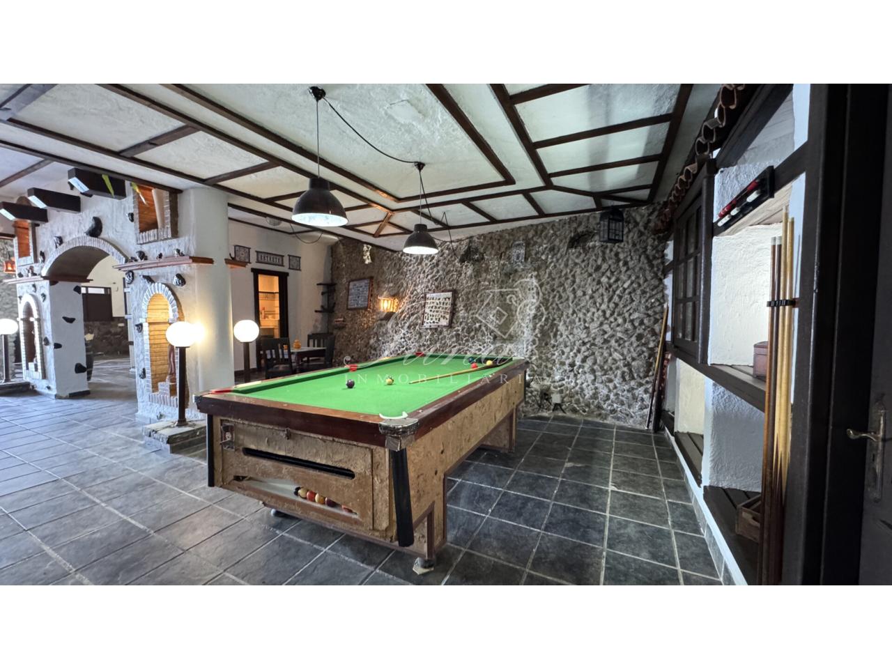 La casa tiene actualmente aproximadamente 200 m² habitables, distribuidos en una cocina, salón-comedor, dos dormitorios y un baño. Además, hay un garaje de 220 m² con potencial para construir hasta cinco habitaciones adicionales y cinco baños, según los deseos del comprador, ofreciendo una excelente oportunidad de explotación.
